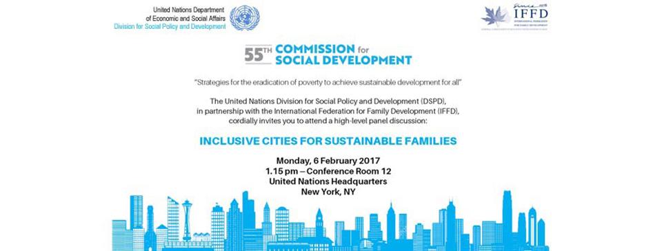 Un debate de alto nivel sobre ‘Ciudades inclusivas para familias sostenibles’ se ha celebrado en la Sede de la ONU durante el 55º período de sesiones de la Comisión de Desarrollo Social, organizado conjuntamente por el Departamento de Asuntos Económicos y Sociales de las Naciones Unidas y la International Federation for Family Development.